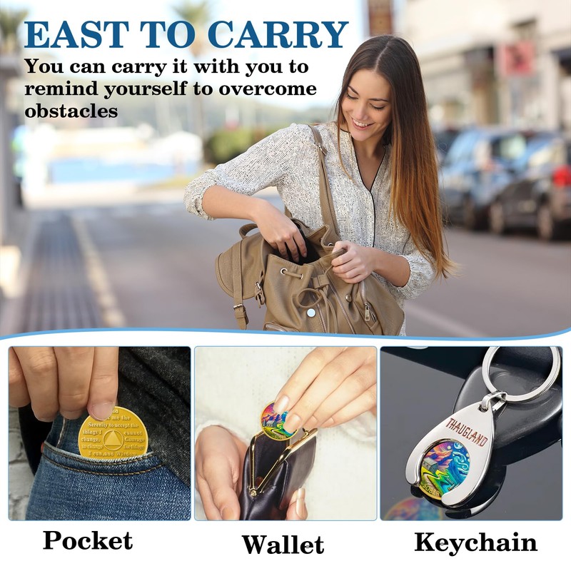 - IDEAL SIZE: Measuring 1.38 inches in diameter, this sober coin fits perfectly in your pocket, wallet, or on a keychain. Small enough to take anywhere, whether you hold it during meditation, keep it in your car, or display it on your nightstand, it reinforces your resilience in tough times
