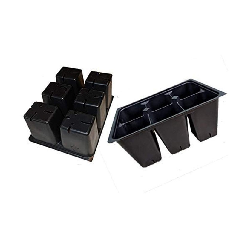 These DEEP EXTRA LARGE CELLS give larger root balls so your plant will have a head start after transplanting. Each cell is 2 1/2' W x 2 1/4" L and 3" deep. Light weight flexible plastic for easy de-potting of seedlings. Each 6-cell tray measures 7" X 5". Six of these trays fit inside a standard 1020 nursery flat. Generally considered single use although they may be reusable with care in handling.
