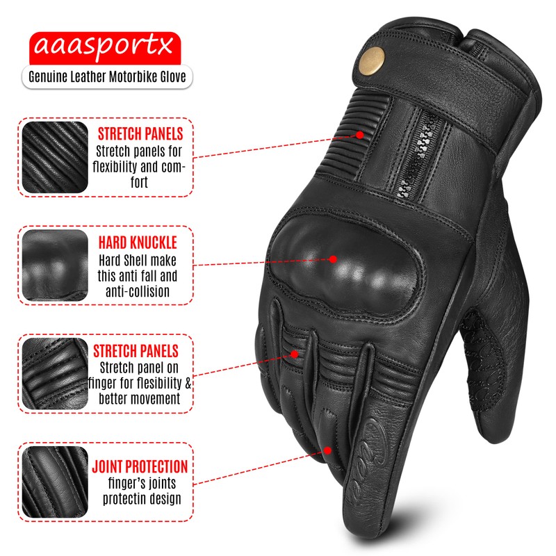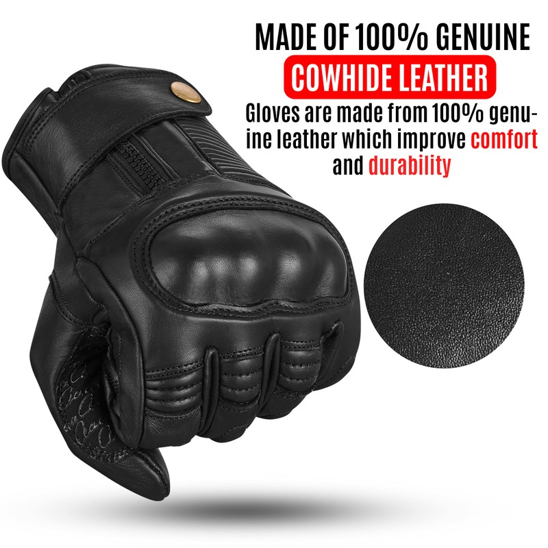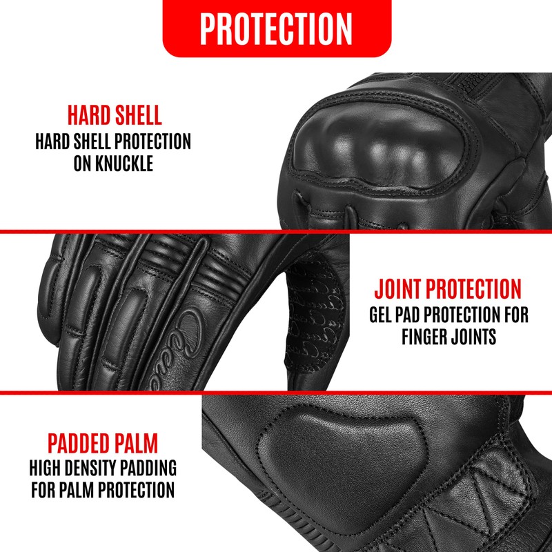 - LEDER HANDSCHUHE MIT HARDSHELL PROTEKTOR - Unsere Leder Motorrad- Handschuhe bieten dank des integrierten Hardshell-Protektors an den Knöcheln und Fingern maximalen Schutz bei Unfällen und Stürzen.