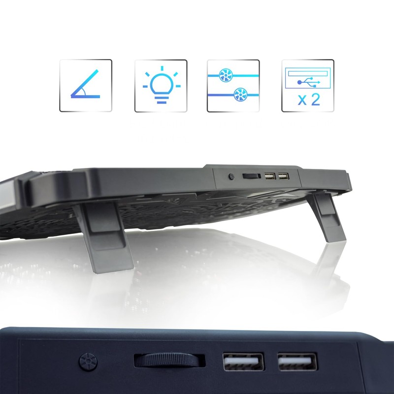 - Easy installation of the cooling pad: simply connect the USB cable to the laptop, press the power switch - adjust the potentiometer and it works → 2 x USB port. Power supply: USB 3.0/2.0/1.1/1.0 port, 5V DC → Lifespan: 20,000 hours