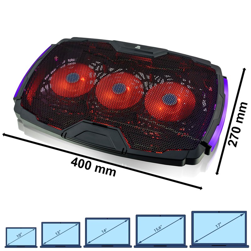 - Stable and strong laptop cooler design: efficient cooling and low temperatures are ensured by 3 92 mm fans. 10-15.6-17 inch compatible gaming laptop with cooling