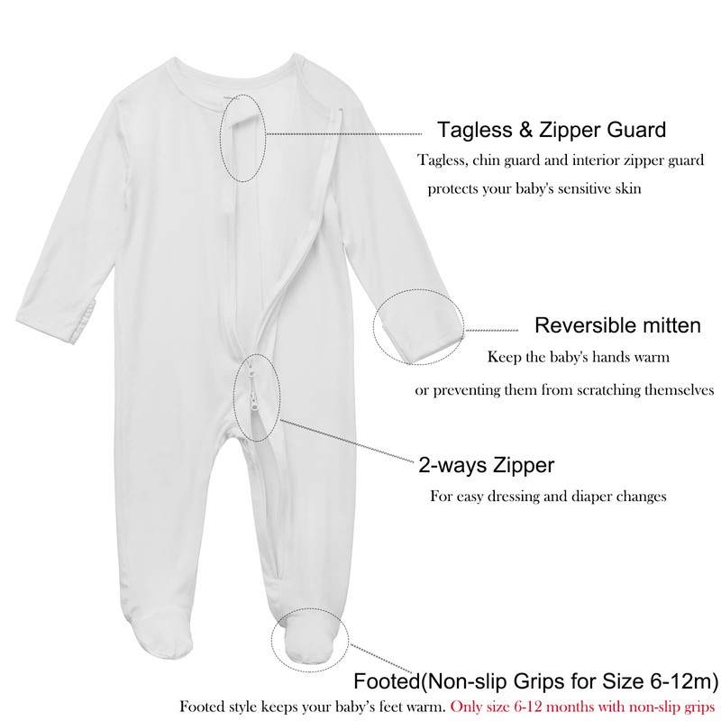 Aablexema Baby Footie Pajamas Zipper - Rayon from Bamboo Infant Footed Pjs with Mittens Sleepwear Jammies(White,6-12m)