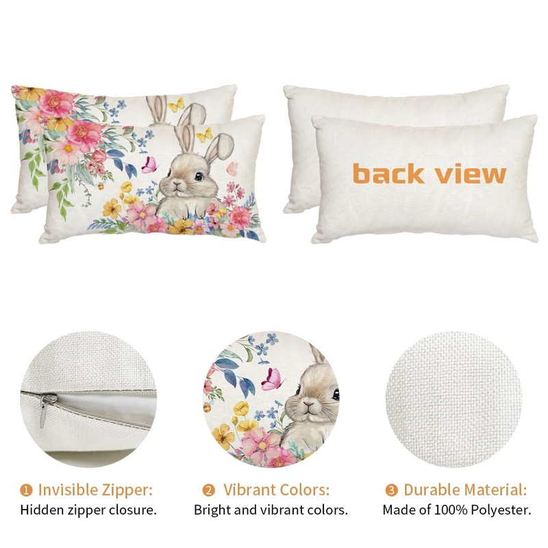 - [Package]: Set of 2 Easter Pillow Covers (Insert or filler is NOT included). It measures 12x20 inches and fits most 12x20 inch inserts or smaller. Our pillow cover is hand sewn and measured, please allow +/- 1cm tolerance