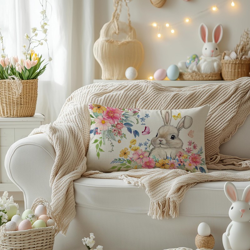 AACORS Easter Pillow Cover 12x20 Inch Set of 2,Bunny Flower Decorative Pillow Case Holiday Party Decorations for Home Sofa Couch AA688-12-2