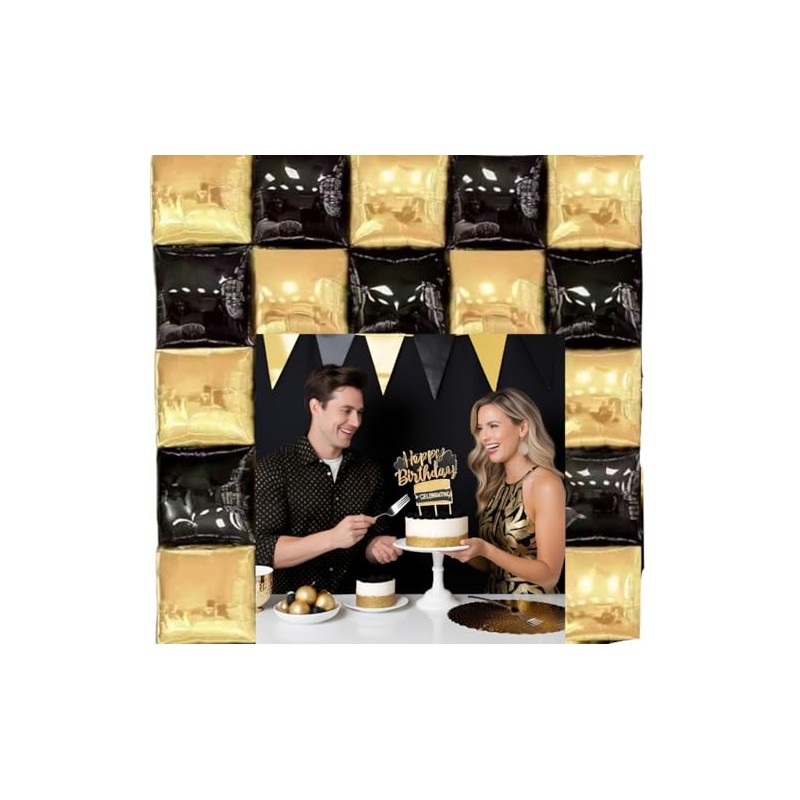 Aahanic 25PCS Black and Gold Square Foil Balloons Wall Backdrop