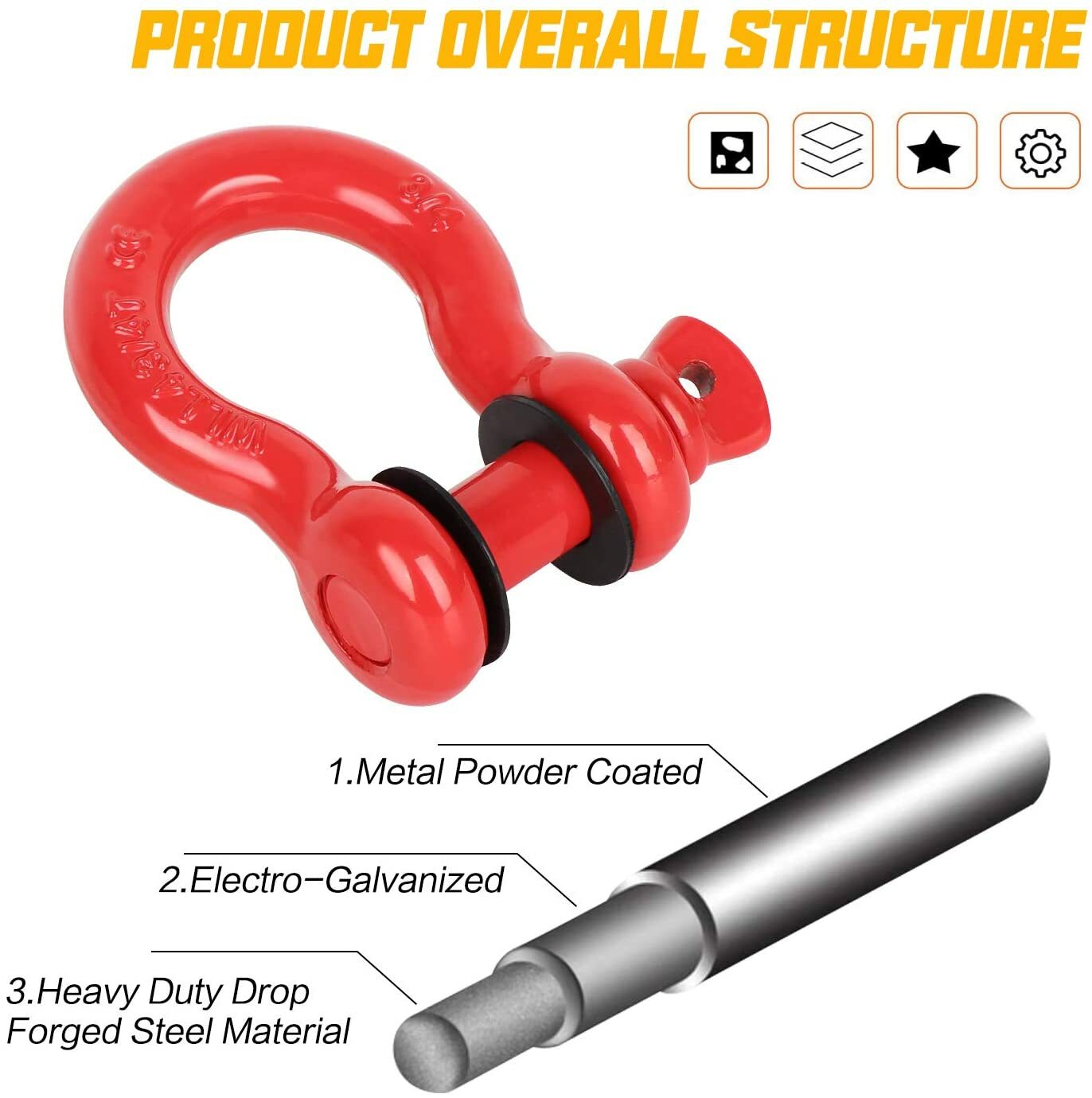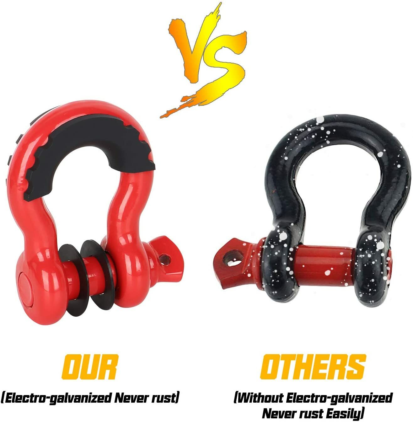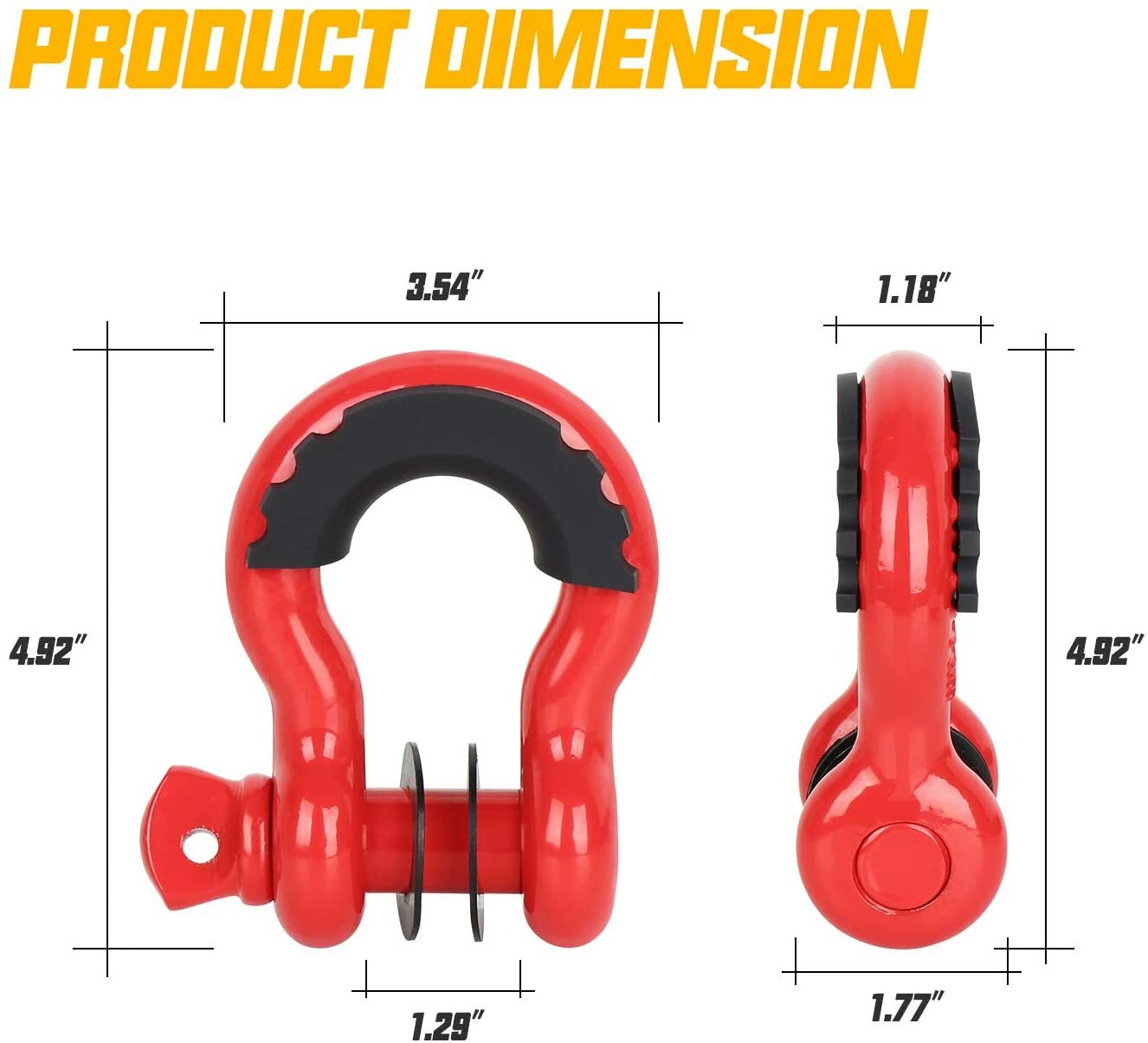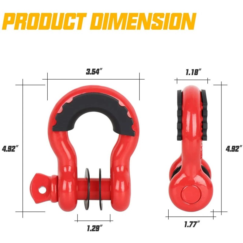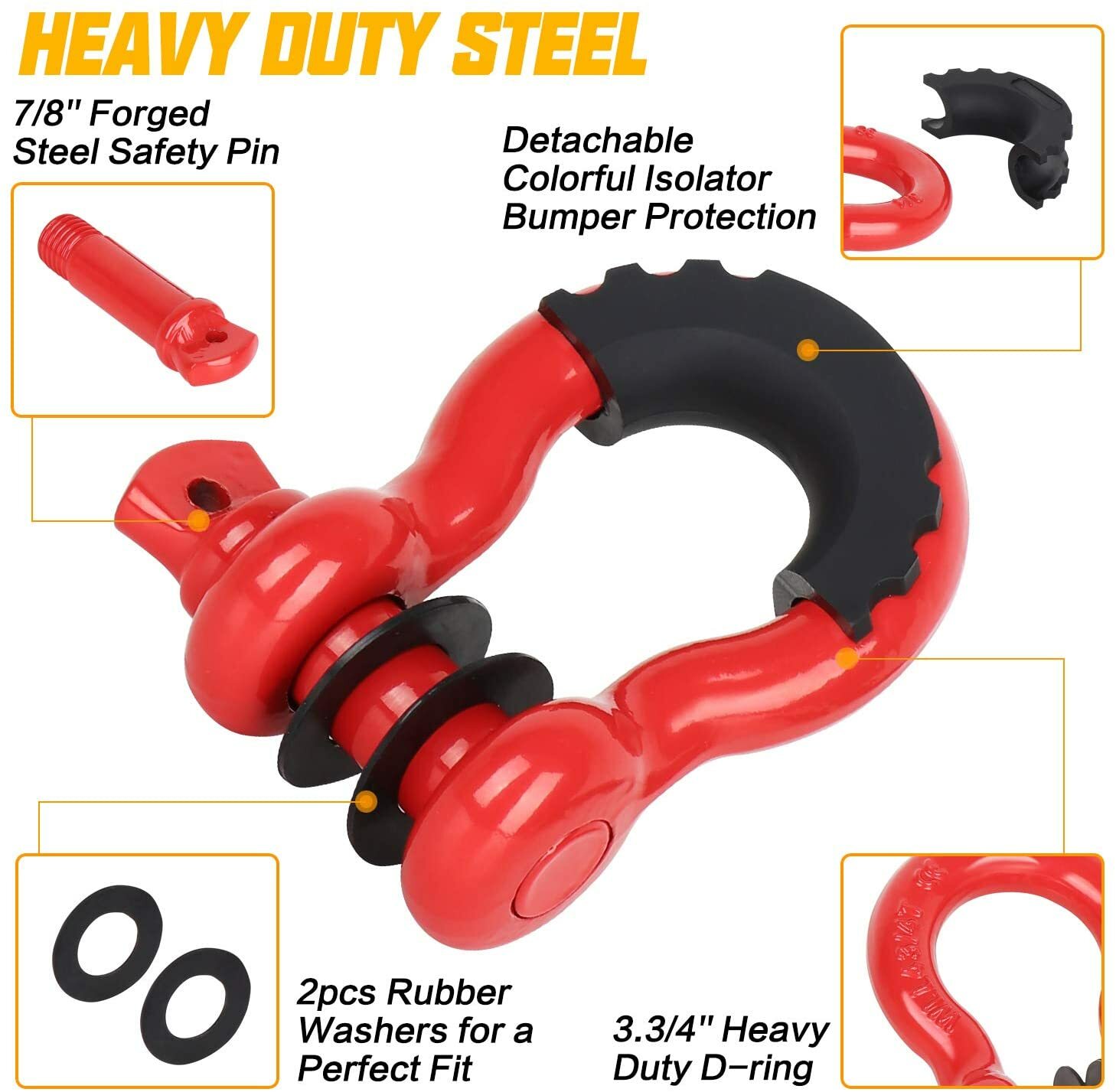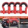 Aaiwa 4set 3/4" D-Ring Red Bow Shackles W/ Black Isolators Washer Clevis Kit 4.75 Ton