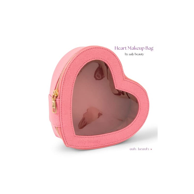 Aaly Beauty Heart Makeup Bag – Beautiful Pink Heart Shaped Cosmetic Organizer with Clear Cover – Fits Daily Essential Skincare, Makeup and Brushes