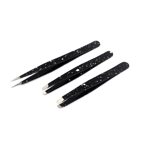 AAProTools Eyebrow Tweezer Set,3 Pcs Premium Stainless Steel Eyebrow Tweezers with Pouch,Tweezers Set with Slant, Straight and Pointed Tips - Precision Calibrated - (Black & White) A+ Quality