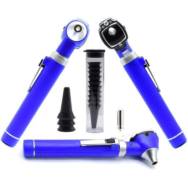AAProTools Mini Otoscope Kit Student Home Use Led Bright Light Ent Otoscope Pocket Size Blue Plus 1 Extra Replacement Bulb Plus 10 Specula