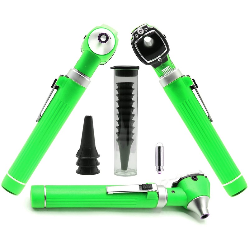 AAProTools Mini Otoscope Kit Student Home Use Led Bright Light Ent Otoscope Pocket Size Green Plus 1 Extra Replacement Bulb Plus 10 Specula