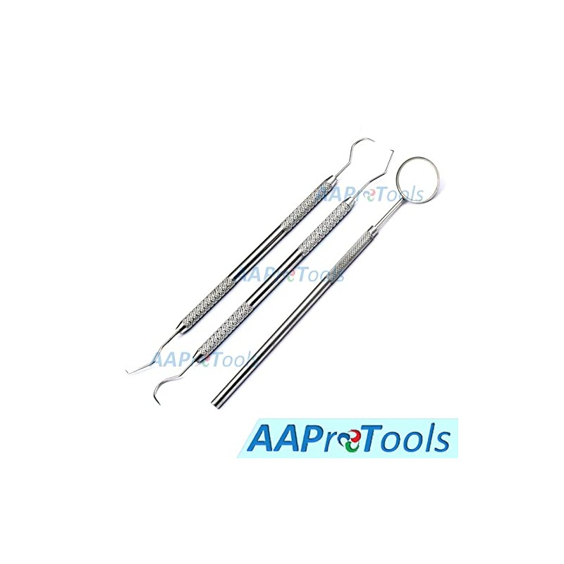 - AAProTools Professinal Dental Hygiene Plaque Tartar Remover Scraper Kit Stainless Steel 3 Piece Pick/Scaler/Mirror