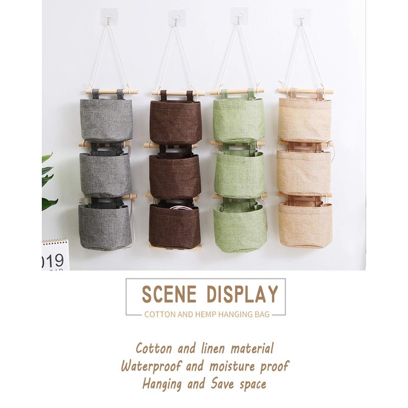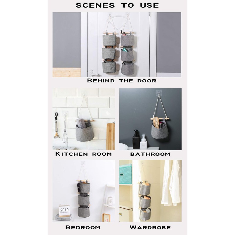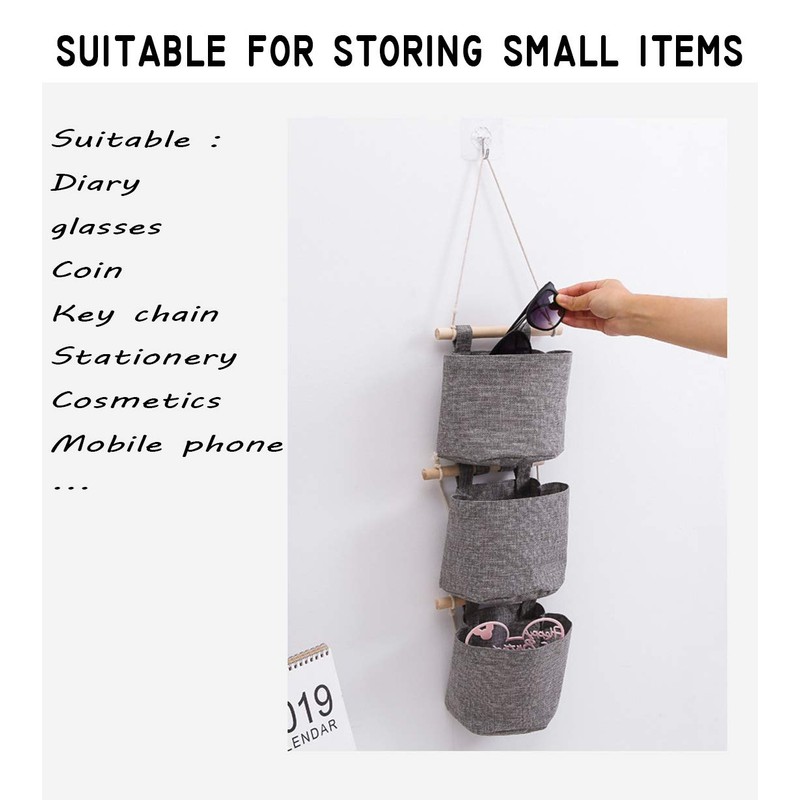 - ✔CUTE DESIGN: Foldable and Detachable,Three pockets can be suspended separately or together.The Storage Pockets are very cute and gender neutral and looks stylish in a room,There is a wooden pole which very convenient to hang