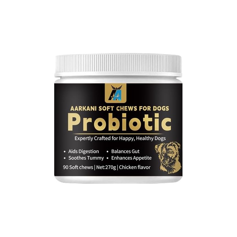 Aarkani Probiotic Supplement for Dogs – Vet-Formulated Soft Chews for Digestive Health, Stomach Relief & Immune Support – Chicken Flavor – 90 Count
