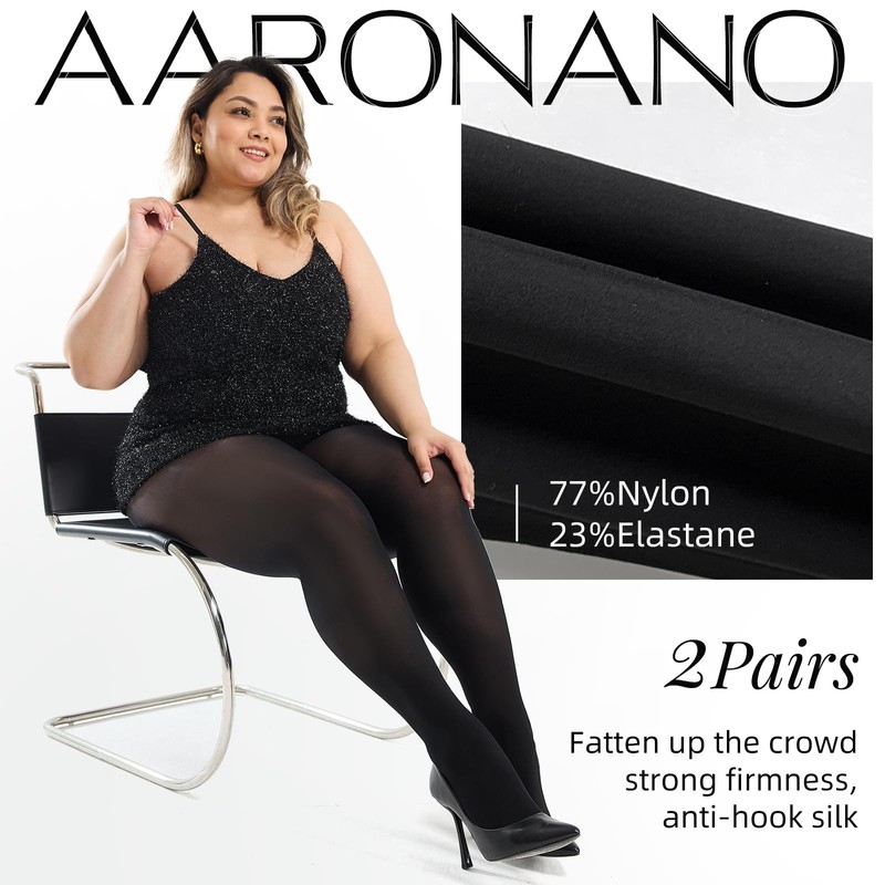 Aaronano 2 Pairs Plus Size Rip Resistant Tights Women Indestructible Nylon Pantyhose High-waisted Reinforced T-Crotch (Black, 3XL-4XL)
