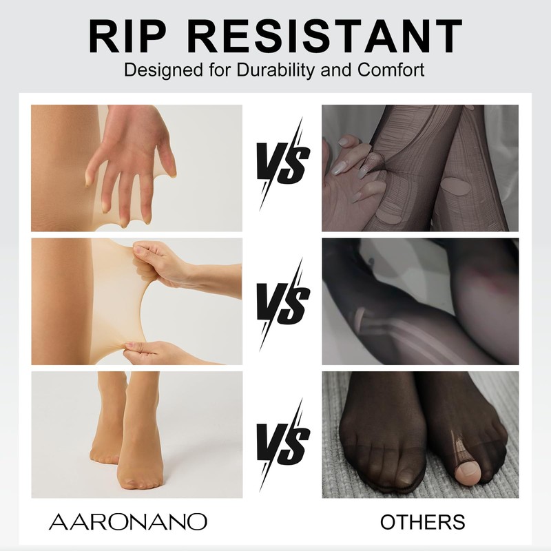 Aaronano 2 Pairs Run Resistant Tights for Women Semi Opaque Rip-Resist Pantyhose with High Waist Natural Small