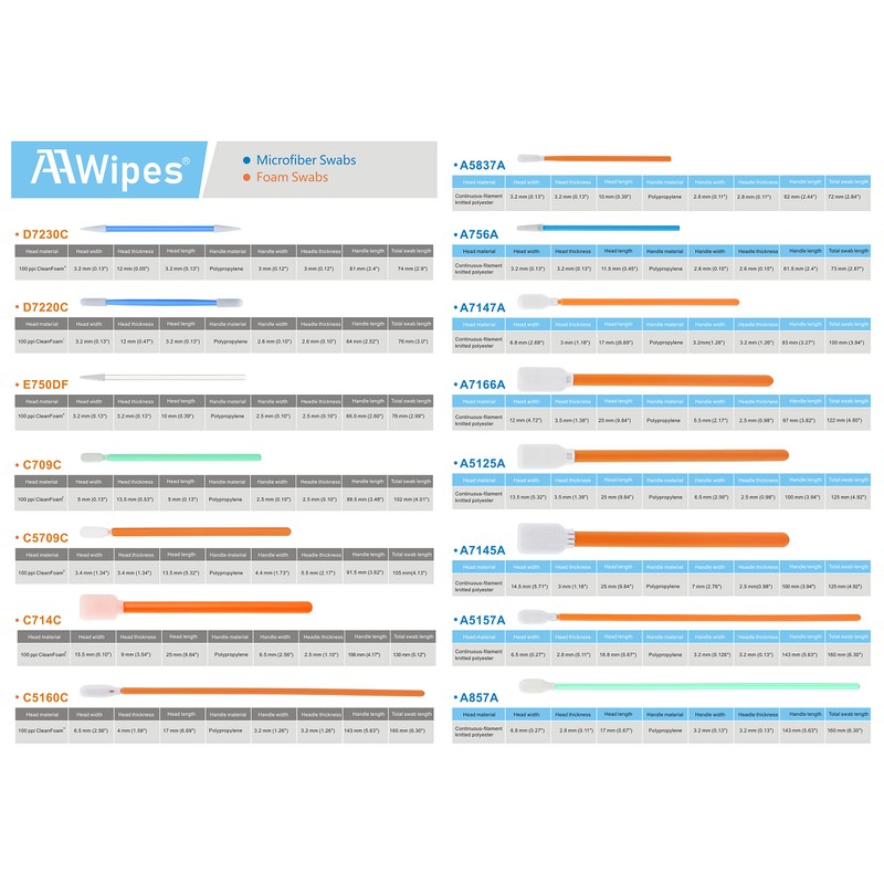 AAwipes Foam Cleaning Swabs (400 pcs, 5.25") - Lint Free Foam Tip Swab Cleanroom Sponge Stick Detailing Lab Swabs for Camera, Inkjet Printer, Optical Lens, Optical Equipment (C714C)