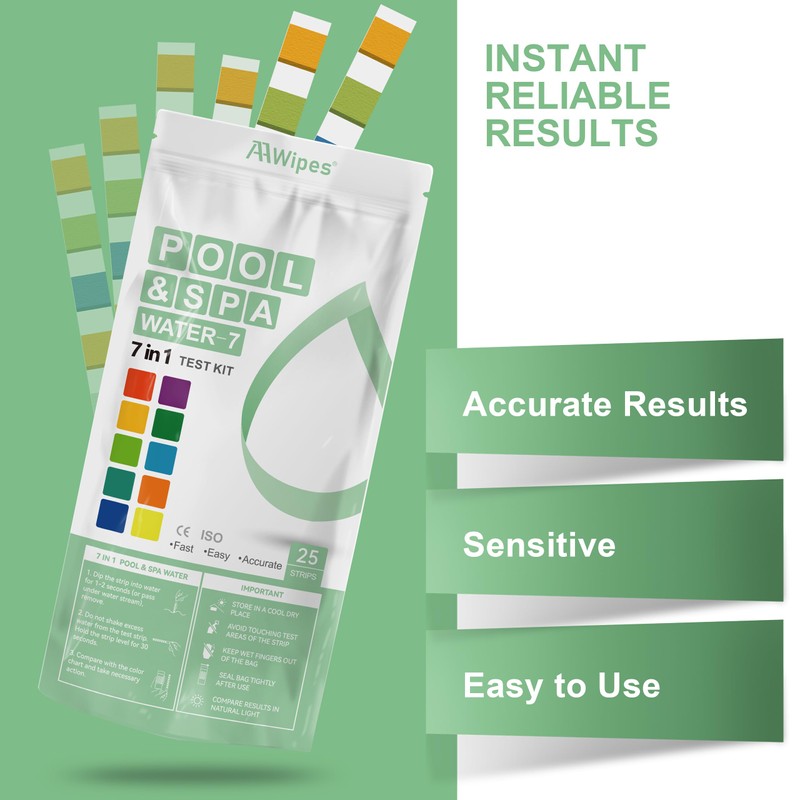 AAwipes Pool Spa Test Strips Hot Tub Test Kit Pool Water Testing Kit Accurate Test Bromine, Total Alkalinity, pH, Free Chlorine, Hardness, Cyanuric Acid, Total Chlorine (K01-25)