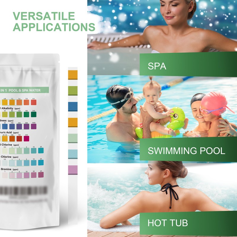 - Simplified Usage: Make pool maintenance easier with our user-friendly test strips. Simply dip the strip into the water for 2 seconds, wait 30 seconds, and compare the results to the included color chart for an accurate reading