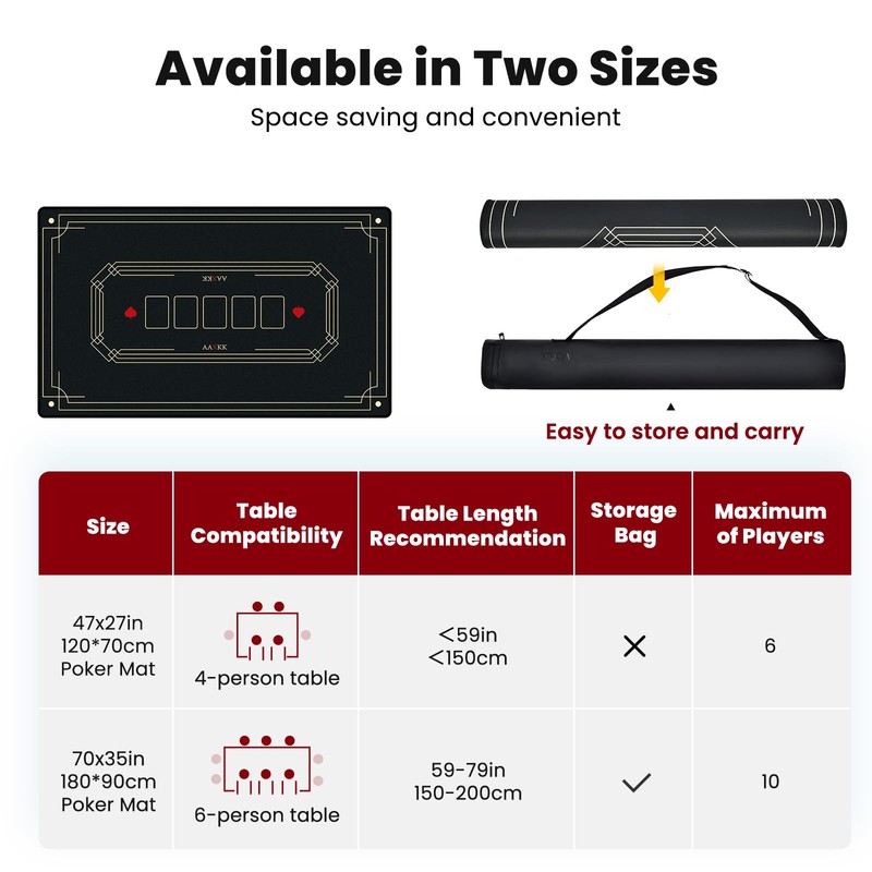 • [Anti-Slip & Odorless]: The bottom of the poker mat is made of natural rubber with anti-slip stripes, which ensures its stability and prevents it from slipping. It has barely perceptible rubber smell, creating a healthy and pleasant gaming environment for you.