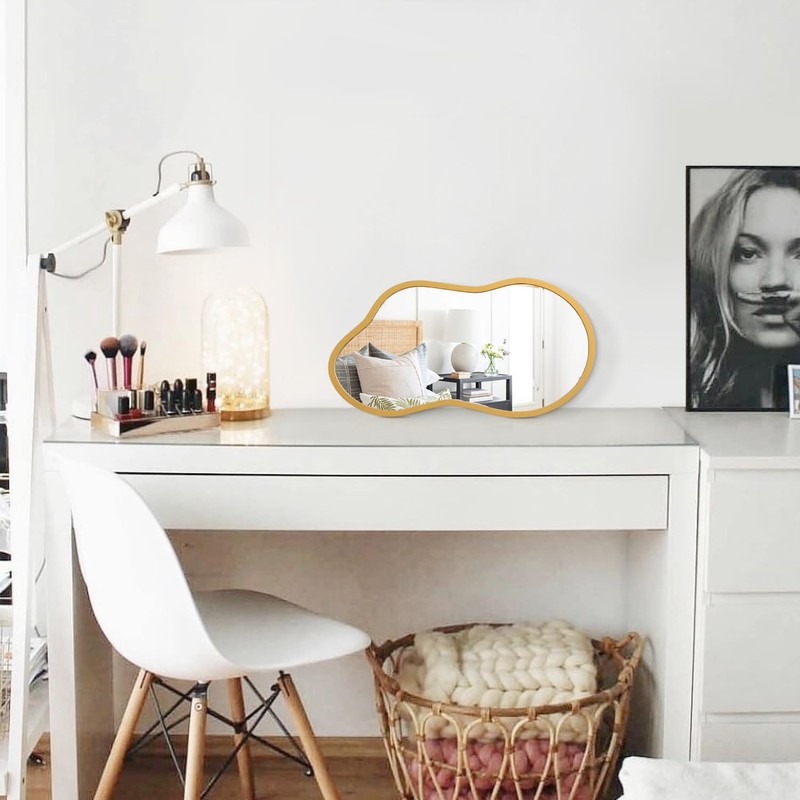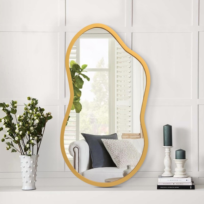 AAZZKANG Asymmetrical Small Mirror with Wooden Frame Irregular Decorative Wall Mirrors for Bedroom Dressing Room Living Room Bathroom Entryway Gold