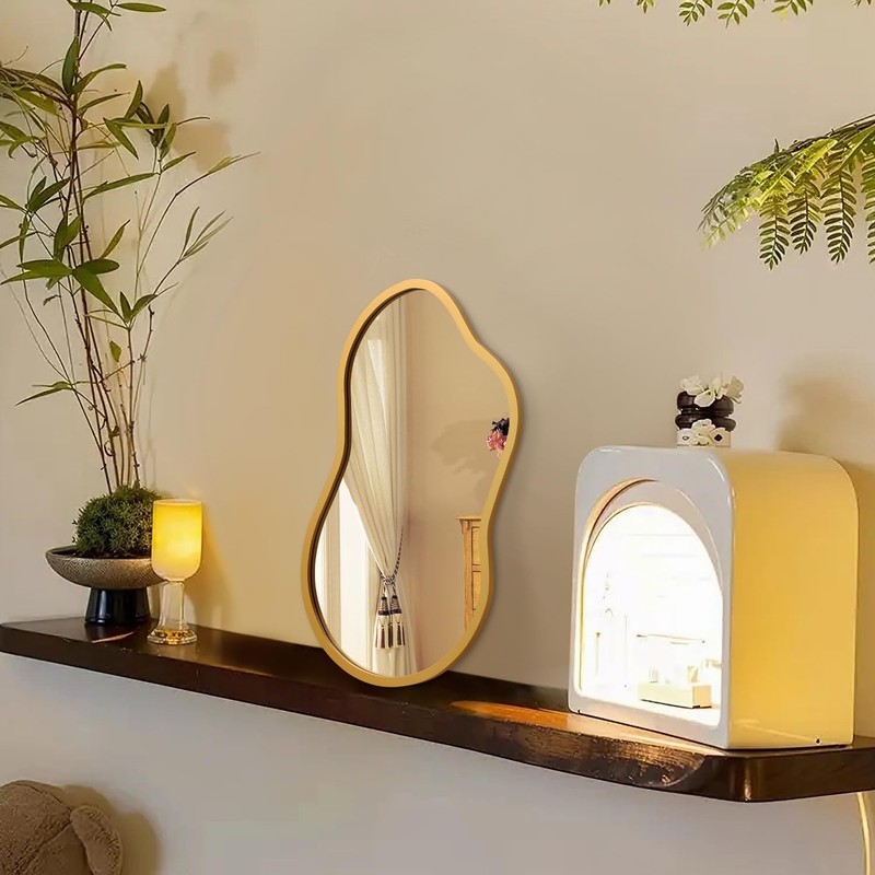 - Wood Framed Mirror: The hanging mirror is constructed by superior wood frame;asymmetric mirror is designed with irregular shape,simple but not design sense;it can be matched with various furniture styles,which can bring a distinctive artistic atmosphere to the space