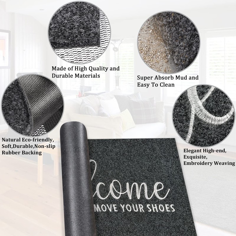 - NON SLIP AND SAFE: The backing of indoor outdoor doormat is constructed of soft and anti slip natural rubber,which not only guarantees the reliability of each step on door rug, but also effectively protects your interior floor coverings.