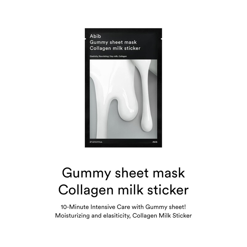 AB1B Gummy Sheet Mask Set, Sedum Hyaluron/Madecassoside/Collagen Milk 10 Sheets, 10-Minute Cooling & Soothing, for Dry & Sensitive Skin (Collagen Milk Sticker*10)