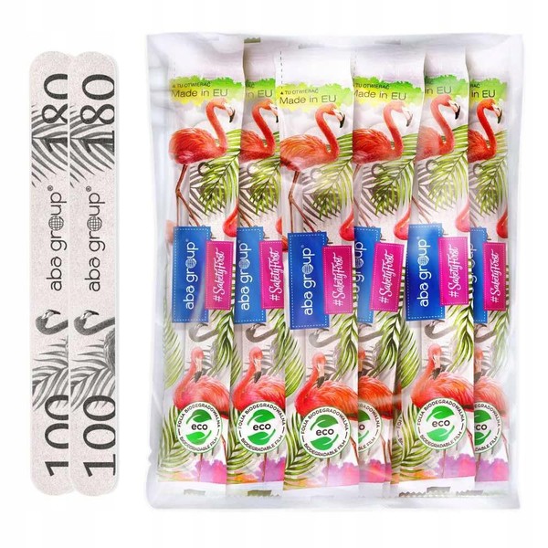 Aba Group Nail Files 100/180 Straight Slim Flamingo Safe Package Professional Nail File Set for Hybrid, Pack of 50