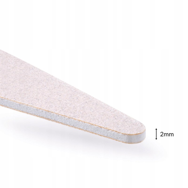 The 100 grit file is the right choice for filing, trimming and filing gel paste. The 180 grit is the most popular choice among nail stylists. It is the most versatile grit and can be used for trimming nails, filing and editing hybrid nail files and smoothing gel files. 240 grit is the finest grain recommended for natural nail plates. It gently smooths the free edge of the nail and gives it the final shape without fear of splitting the plate. Besides, it can be used as a polisher to mattify the nail before applying products.