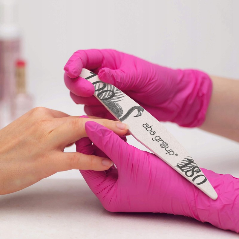 Aba Group disposable nail files for professional use. The files are designed to work with gel and acrylic paste and are recommended for procedures that require effective and safe filing, trimming or pre-treatment of nails.