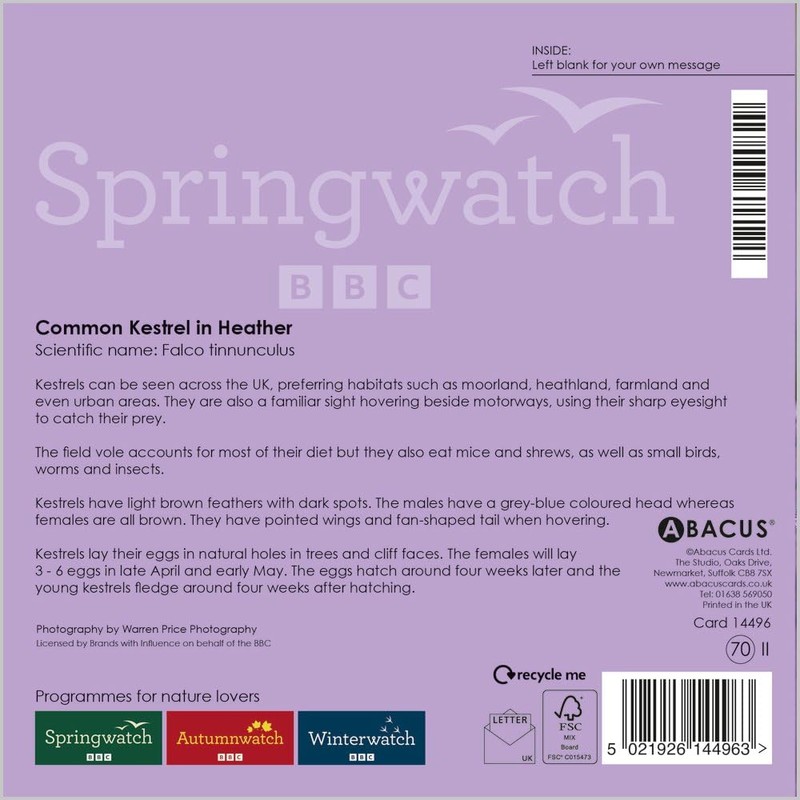 Abacus Cards Birthday/Blank Card for Men/Women - General Male/Female Card - Common Kestrel in Heather - Eco-Friendly and Recyclable