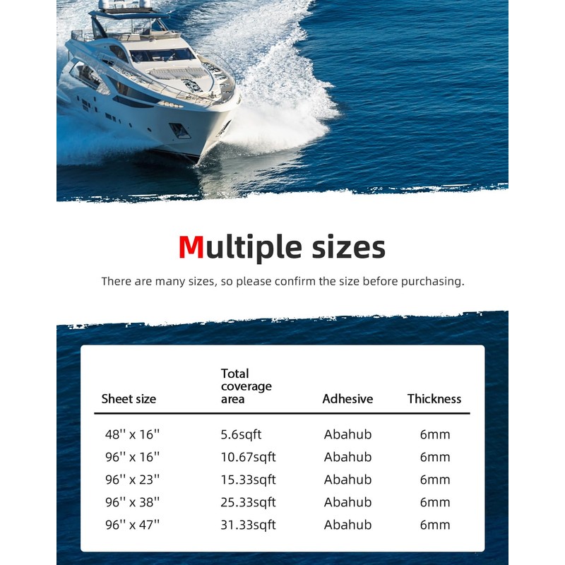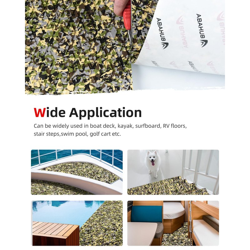 • Versatile Application: The Abahub teak EVA foam boat deck pad can add personality and comfort to your boats, skimboards, surf boards, funboard, fish board; it is suitable for boat floors, motorboats, marine decks, swim platforms, RVs, board deck, yacht floors, golf carts, kayak decks, surfboard traction pads, stair treads, etc
