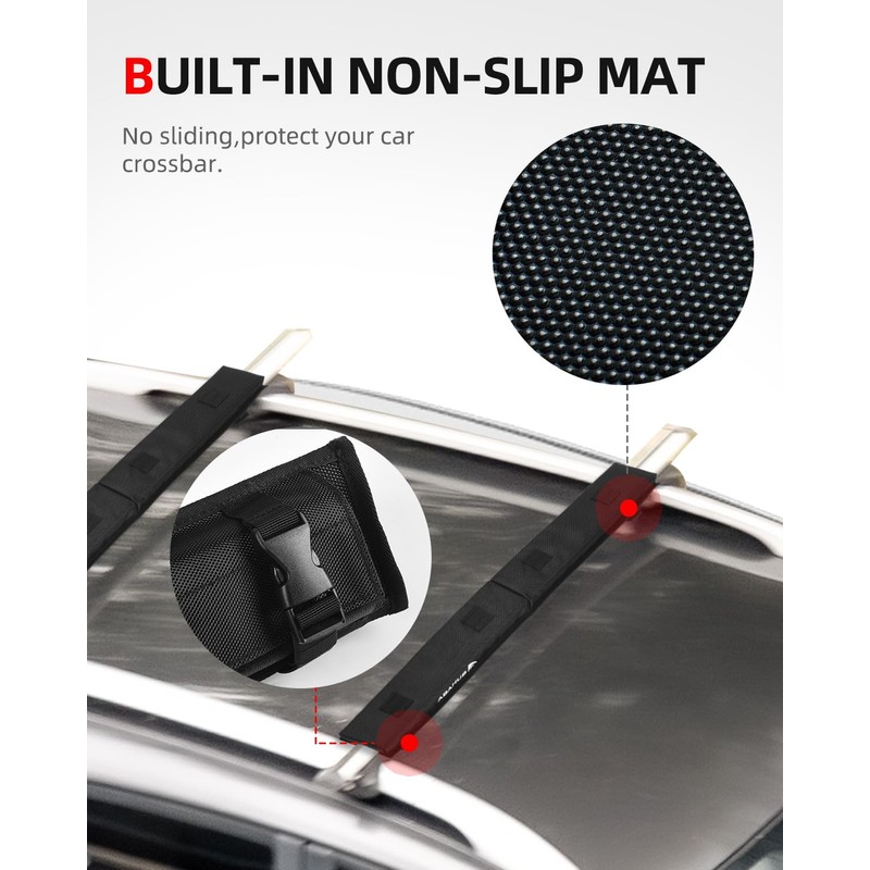 - Scratch-Proof Design for Vehicle and Cargo Protection:Featuring a Neoprene Sleeve on the cam buckle, our roof rack protects both your vehicle and cargo from scratches and damage. Pro Tip: Always throw the strap end without the buckle when adjusting to avoid accidental scratches. Safety and care built into every detail.
