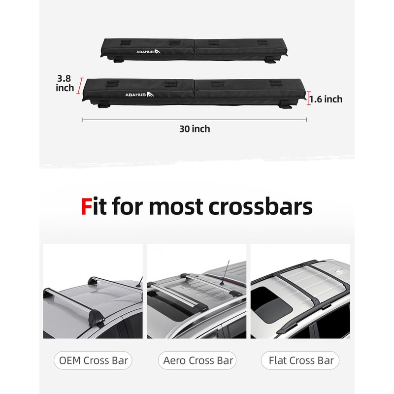 Abahub Soft Roof Rack Pads with 2 Tie Down Straps, 2 Tie Down Ropes, 2 Hood Loops and Storage Bag, for Surfboard, Kayak, Canoe, Heavy Duty Universal Car Roof Racks System (Use with Cross Bar)