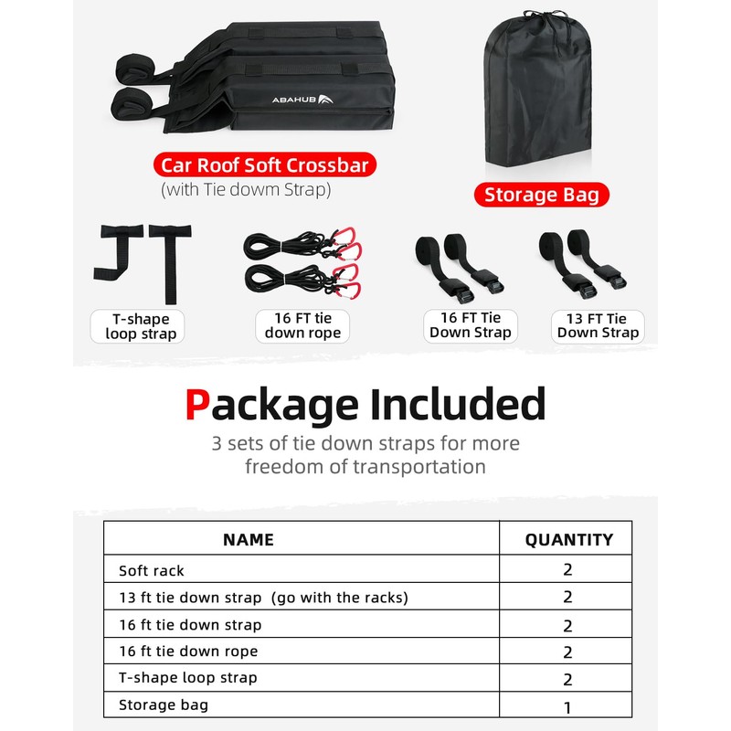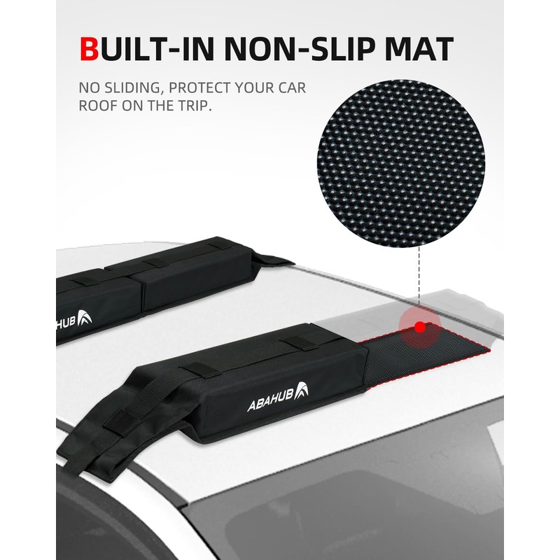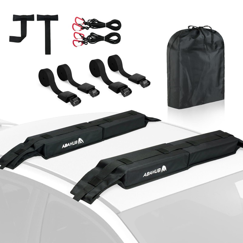 Abahub Soft Roof Rack Pads with 2 Tie Down Straps, 2 Tie Down Ropes, 2 Hood Loops and Storage Bag, for Surfboard, Kayak, Canoe, Heavy Duty Universal Car Roof Racks System (Use Without Cross Bar)