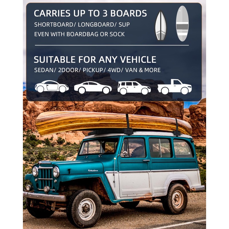 - Ultimate Versatility for All Your Gear : This universal car roof rack is the perfect solution for transporting kayaks, surfboards, SUPs, canoes, snowboards, and more. Designed to fit SUVs, sedans, hatchbacks, and 2-door or 4-door cars—with or without side rails—it’s your go-to for beach trips, mountain adventures, or lake outings. Convenience and reliability guaranteed.