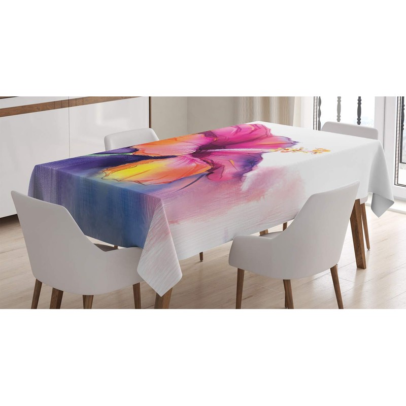 ABAKUHAUS Flower Tablecloth, Hibiscus Flower Pastel, Dining Room Kitchen Rectangular Table Cover, 54 W X 78 L, Multicolor