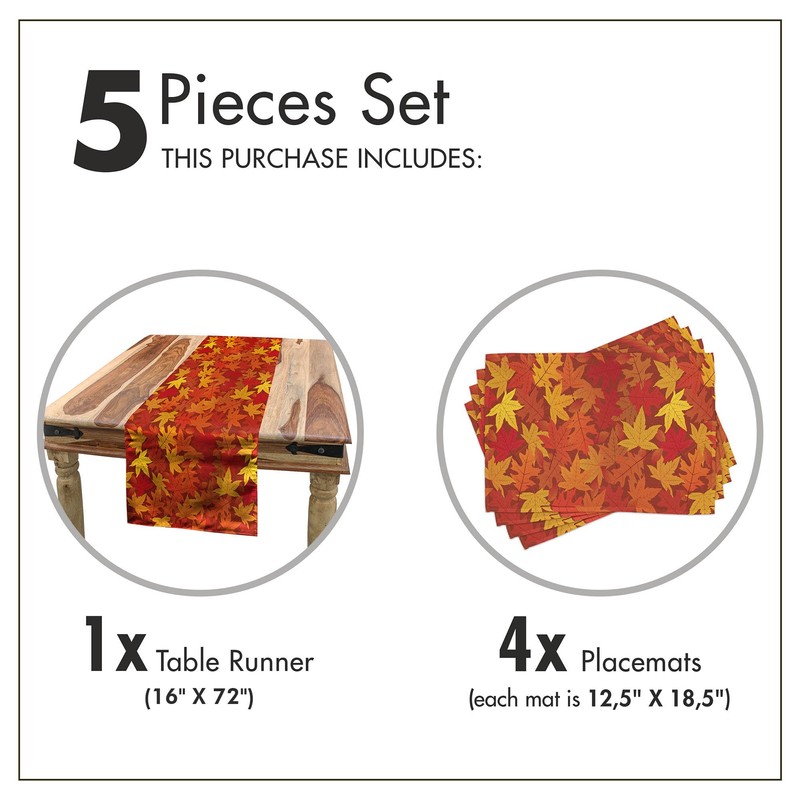ABAKUHAUS Orange Table Runner & Set of 4 Placemats, Nature Designs, Set for Table Decoration, 41 cm x 183 cm, Burnt Orange