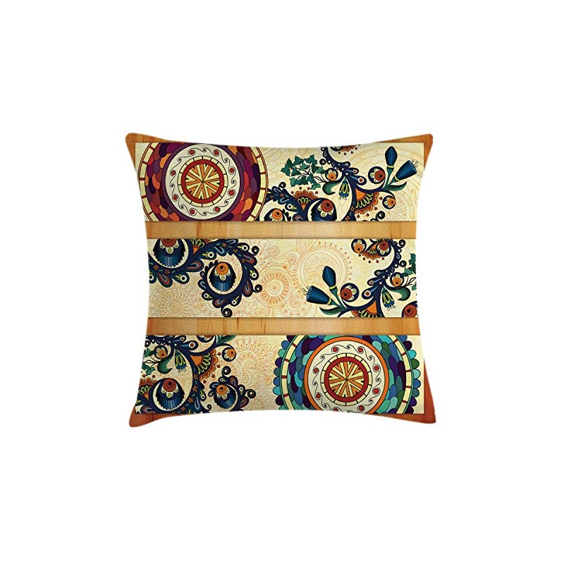 ABAKUHAUS Paisley Cushion Cover, Eastern Batik Art, Side Sleeper Pillow Cover without Pillow with Zip and Print on Both Sides, Washable, 40 x 40 cm, Brown Yellow