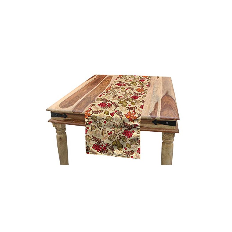 - ABAKUHAUS Rowan Table Runner, Fall Themed Mixed Pattern, Dining Room Kitchen Rectangular Decorative Table Runner, 40 x 180 cm, Red Beige