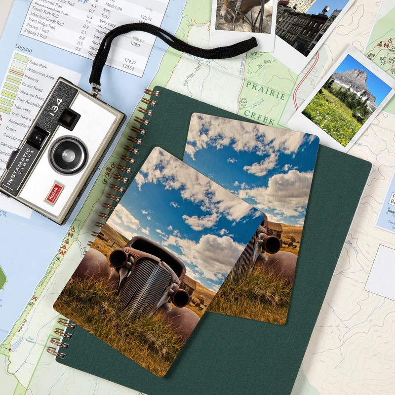 - Abandoned Car in Field (4x6 Birch Wood Postcards, 2-Pack Stationary, Rustic Home Wall Decor), high-quality sustainable wood printed in Seattle