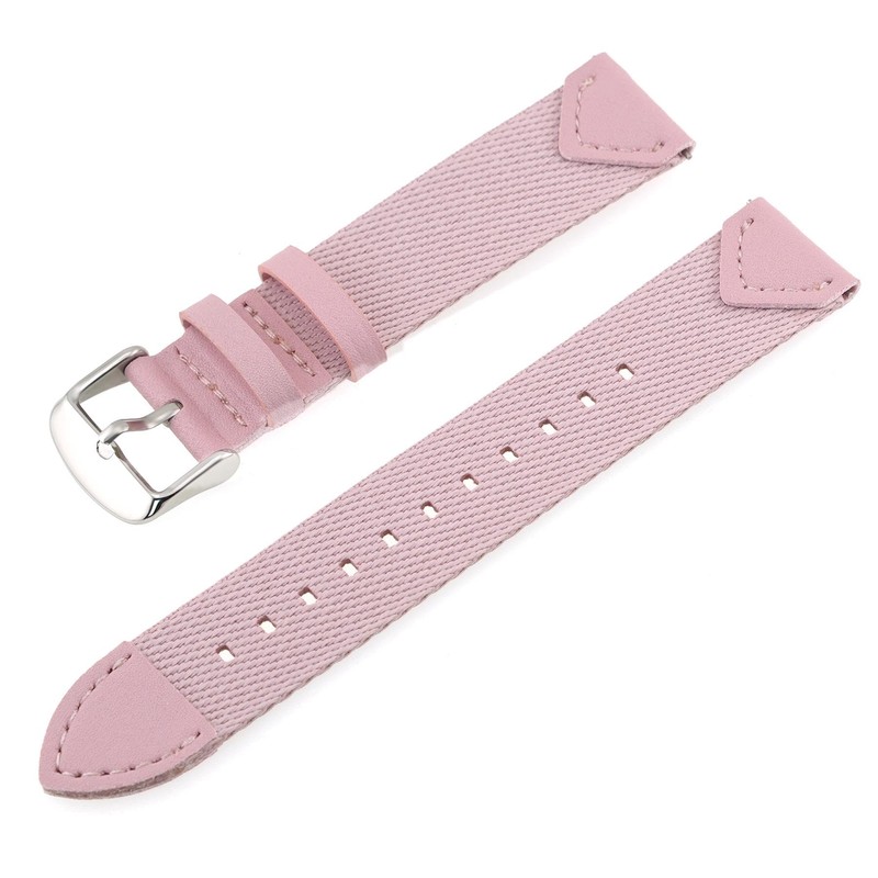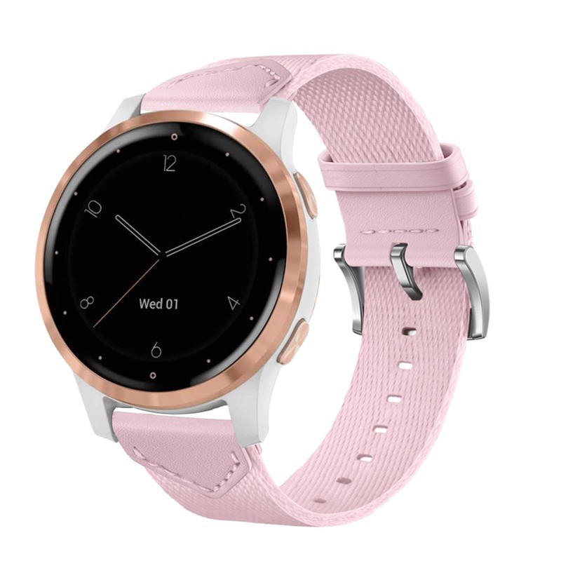 Abanen 18mm Quick Release Nylon PU Leather Lightweight Watch Band Compatible with Garmin Vivoactive 4S / Venu 3S / Venu 2S, Soft Breathable Watch Strap for Forerunner 265S / 255S (Pink)