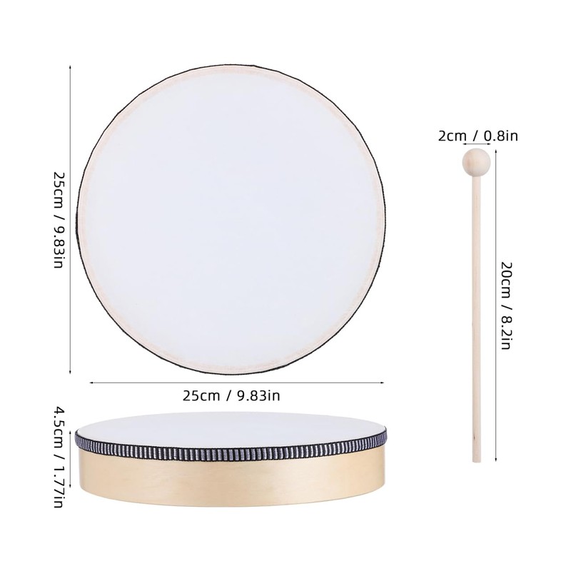 - Package includes: You can receive 1x of 10 inch hand drum and 1x drumstick, the drum is 1.8 inches high, and the drumstick length is 8.2 inches. Easy to hold in hand and easy to carry