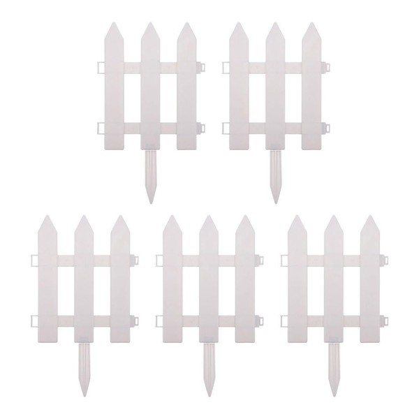Abaodam 5 Pieces White Plastic Garden Fence with 5 Pieces Insert Garden Picket Fence Edgings for Lawn Flowerbeds Plant Borders Decorative Yard 117.9'' H * 9.8'' L