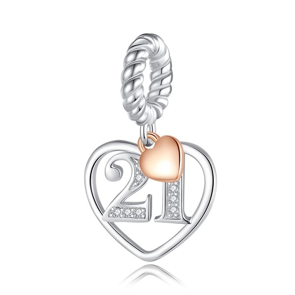 - Heart 21 Nmuber Dangle PACKAGE:1 Sterling Silver Charm + 1 Silver Polishing Cloth + 1 Small Jewelry Pouch