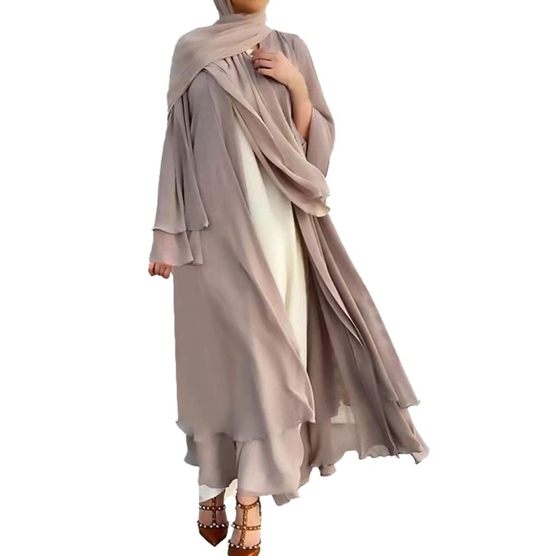 - New Design Women Muslim Dress women muslim cardigan maxi dress, features casual style, solid color easy to match other clothes, loose long sleeve, comfortable to move around. Open front women islamic dress abaya cardigan dubai clothes with belt, great to wear as cardigan or dress, double layers and flowy design, makes you look more elegant and graceful.