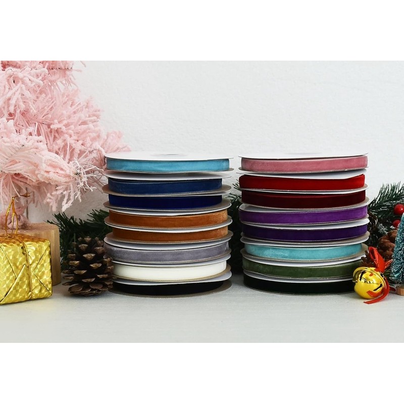 - QUALITY MATERIAL: Our velvet ribbon made of quality nylon, the velvet has a fine texture, does not fade easily, soft fabric add a simple, yet tasteful touch to projects. Great for your fine high-ends gift wrapping