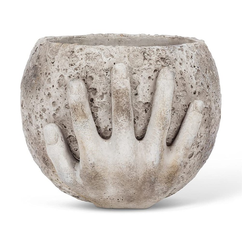Abbott Collection Moon in Hands Cement Planter - Grey, Small (7" W)