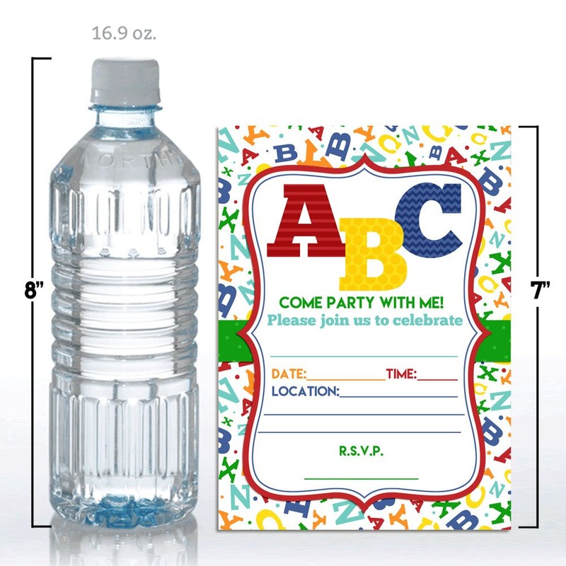 ABC Alphabet Letters and Learning Birthday Party Invitations, 20 5"x7" Fill i...