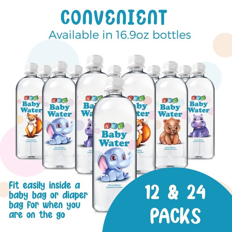 ABC Baby Water Premium Distilled Water for Babies - Healthy Purified 16.9 oz Bottles - Formula, Cereal, Milk, Daily Drinking - 12 Pack